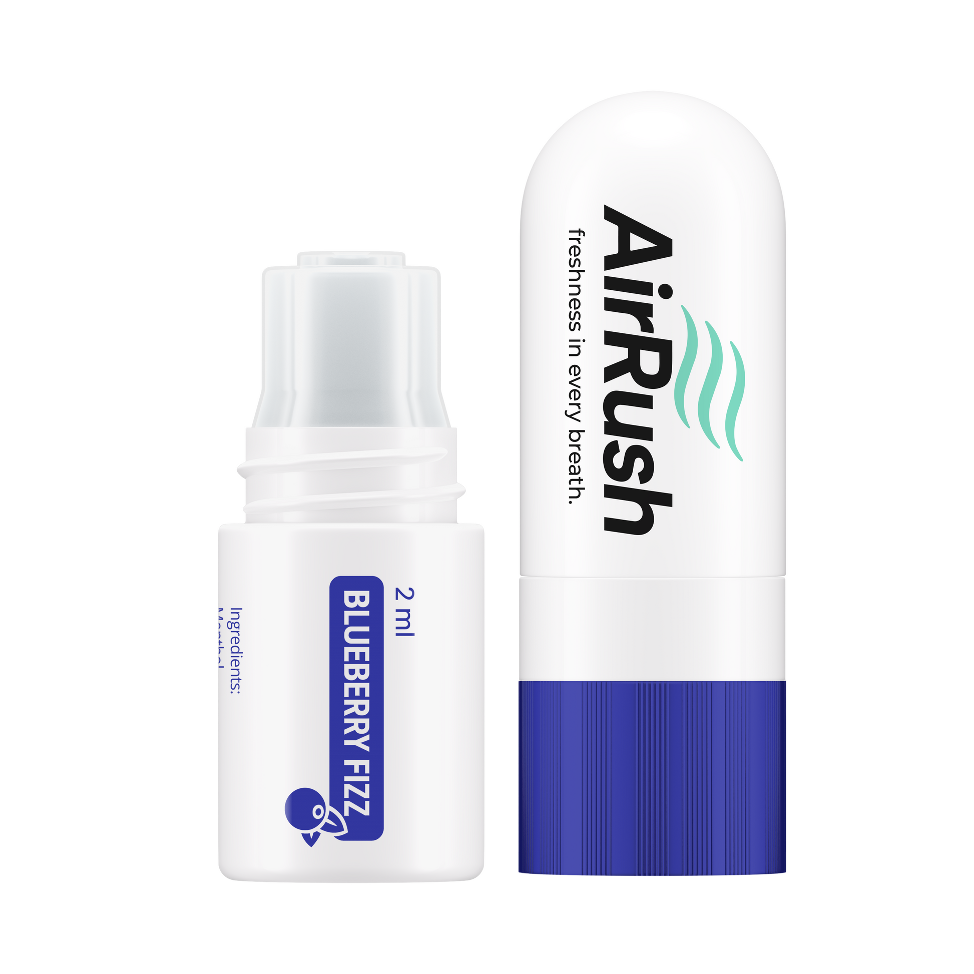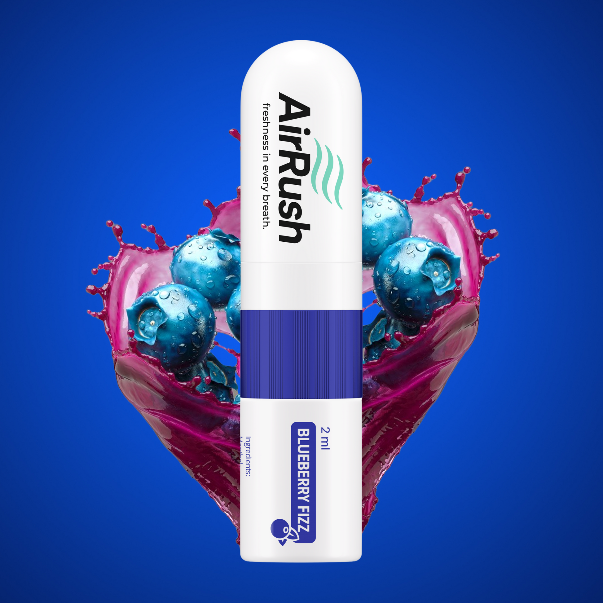Erlebe das fruchtig-frische Aroma von Blueberry Fizz – dem 2-in-1 Aroma Nasal Stick von AirRush.